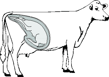 شكل (1) الوضع الطبيعي لجسم المولود في رحم البقرة قبل بدء الولادة