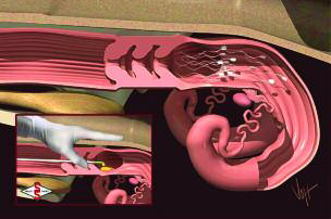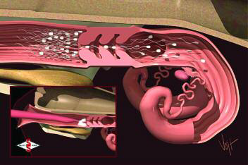 التلقيح الاصطناعي – عملية دفع الحيامن بالقسطرة تكون بعد عضلة عنق الرحم ثم انتقال الحيامن الى الرحم والى قناة البيض