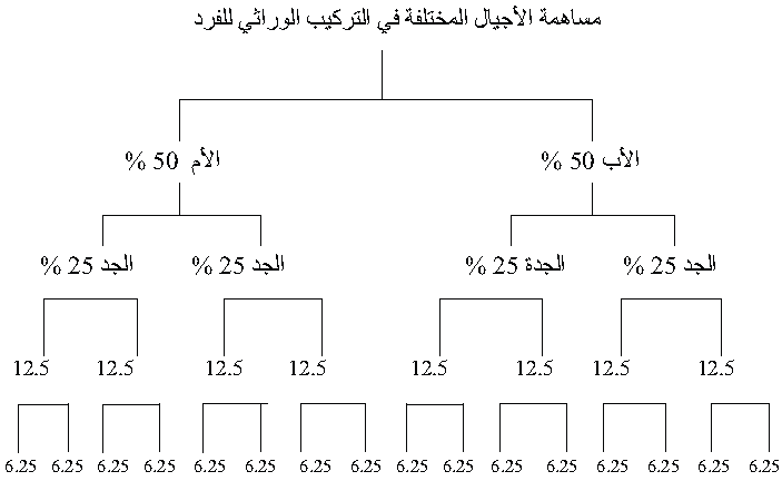 شكل (1) مساهمة الأجيال المختلفة في التركيب الوراثي للفرد
