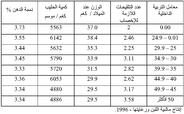 المصدر: القدسي, ناطق حميد, جيال فكتور ايليا .2010.انتاج ماشية الحليب.