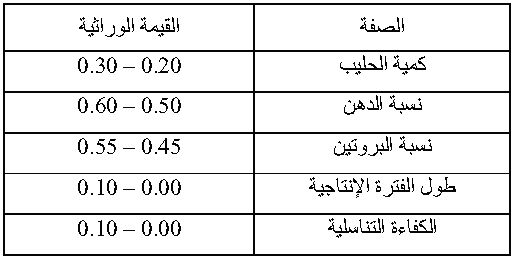 جدول (1) المكافئ الوراثي لبعض الصفات في أبقار الحليب