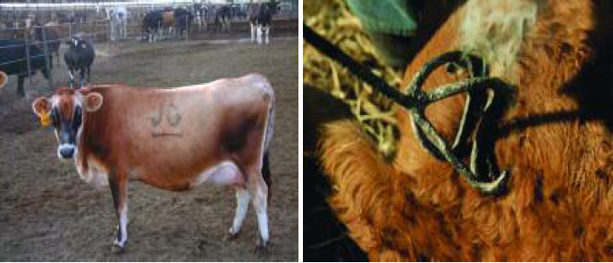 شكل البقرة أثناء عملية الوسم وبعدها