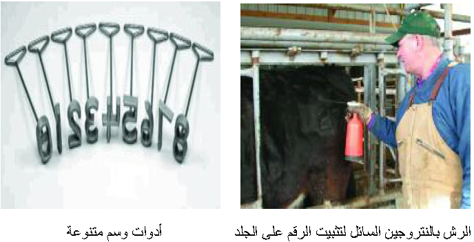 و – كي الأرقام على الاظلاف او القرون: Ironing tag on hoof or horns