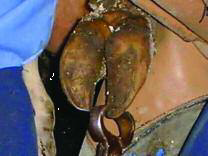 شكل بدء عملية قص الاظلاف والظلف بعد قصه وتنظيفه