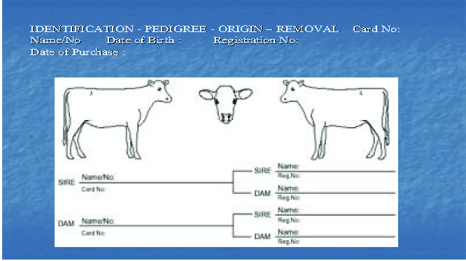 يشمل هذا السجل على اسم البقرة وتاريخ ولادتها ونوعها ومنشأها واوصافها (المظهر الخارجي) ويفضل أخذ صورتها واضافتها على السجل لضمان معرفتها عند فقدان رقمها، ويشمل السجل رقم الأبوين واسميهما.