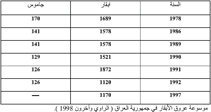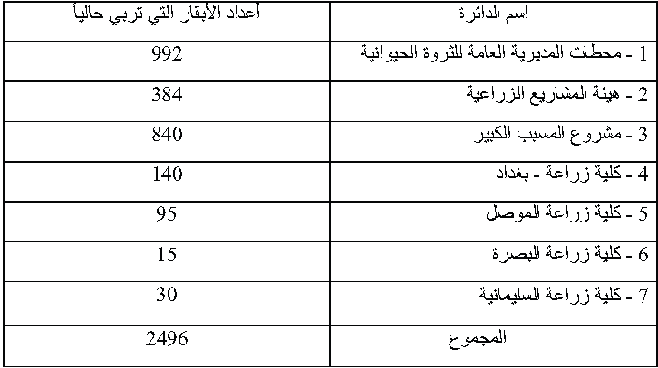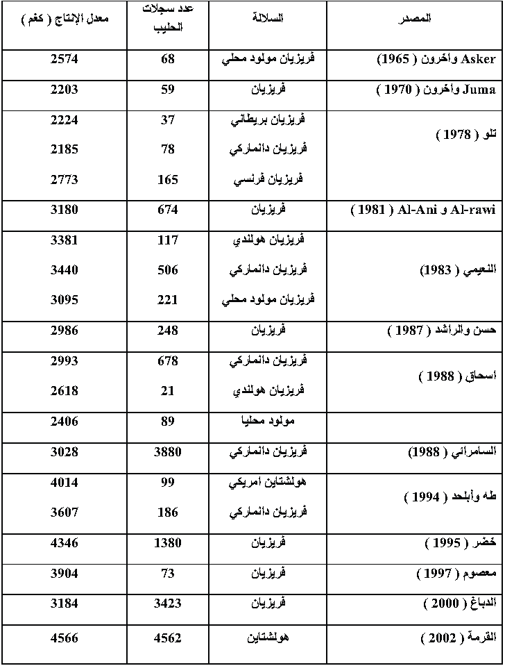 المصدر: القدسي, ناطق حميد, جيال فكتور ايليا .2010.انتاج ماشية الحليب.