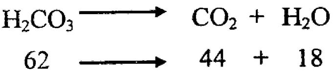 إذا من كل 62 جرام حمض الكربونيك يتولد 0,071 جرام غاز ثاني أكسيد الكربون.