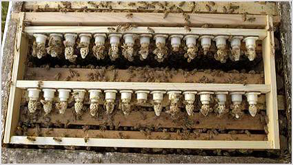 5- بعد أن يصبح عمر البيض من 2-3 يوم يتم تجهيز طائفة بها كمية كبيرة من الشغالات صغيرة السن حيث تستخدم كخلية بادئة وذلك باستبعاد الملكة منها وترك فراغ في منتصفها كافي لوضع البرواز الحامل للكؤوس الشمعية.