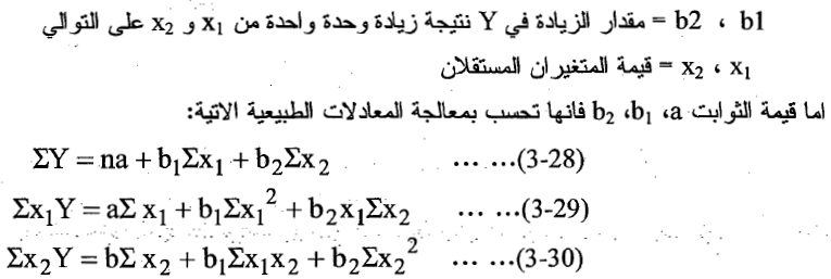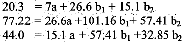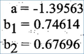 3. بحل المعادلات السابقة بطريقة آنية نحصل على قيمa ، و b1 ، b2 كالآتي: