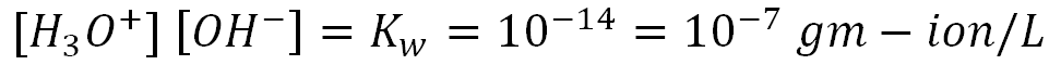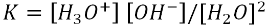 والثابت KW يسمى ثابت حاصل تأين الماء ويساوي تقريباً 14-1X10 عند درجة حرارة 250 مؤية .وفي الماء النقي يتساوى تركيز الأيدروجين مع تركيز أيون الهيدروكسيل كما يلي :