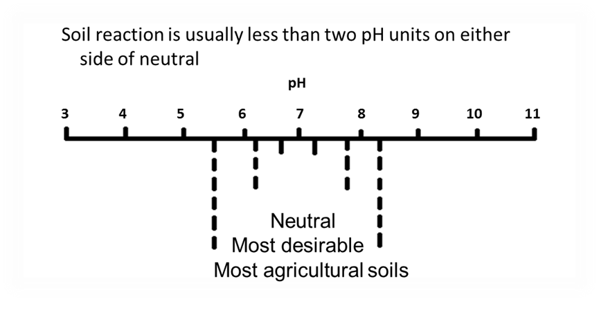و أن PH الأراضي يتراوح بين 3.5 وهي الأكثر حموضة وبين 10.5 وهي الأكثر قاعدية. كما وجد أن قيم الـ PH الأكثر شيوعاً للأراضي الزراعية الأكثر انتاجاً تتراوح ما بين 5.5 و 8.2.