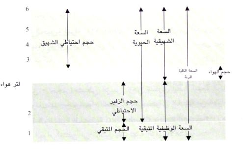 شكل 1 : أحجام وسعات الجهاز التنفسي