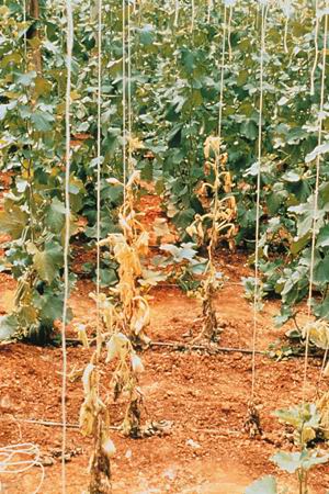 شكل يبين الذبول الوعائي في الخيار (بيت محمي)