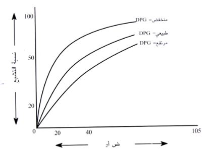 شكل 1 : علاقة الجليسرات ثنائي الفوسفات بتشبع الهيموجلوبين بالأكسجين