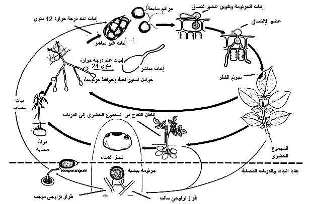 شكل3: دورة حياة الفطر فيتوفثورا انفستانز المسبب لمرض الندوة المتأخرة على البطاطس والطماطم