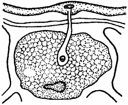 شكل (4) وسادة هيفية تتكون من هيفات مندمجة من ميسليوم الفطر وتحمل على سطحها الاجسام الثمرية دورقيه الشكل مطمورة داخلها.