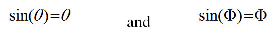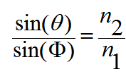 و عندما تكون زوايا السقوط و الانكسار صغيرة جدا، فانه يمكننا وضع جيوب الزوايا مساوية للزوايا ذاتها أي أن: