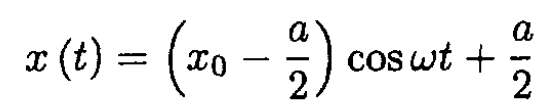 Letting ω2 = 2μg/a, gives ẍ + ω2x = μg. The solution of this equation is