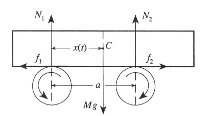 b) Now consider the case in which the directions of rotation of the rollers are reversed, as shown in Figure 1.1b. Calculate the displacement x(t) again, assuming x(0) = x0 and