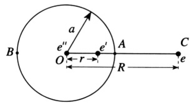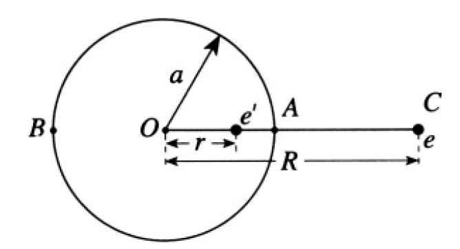 A point charge e is placed at a distance R from the center of a metallic sphere of radius a, with R > a (see Figure 1.1). The sphere is insulated and is electrically neutral.