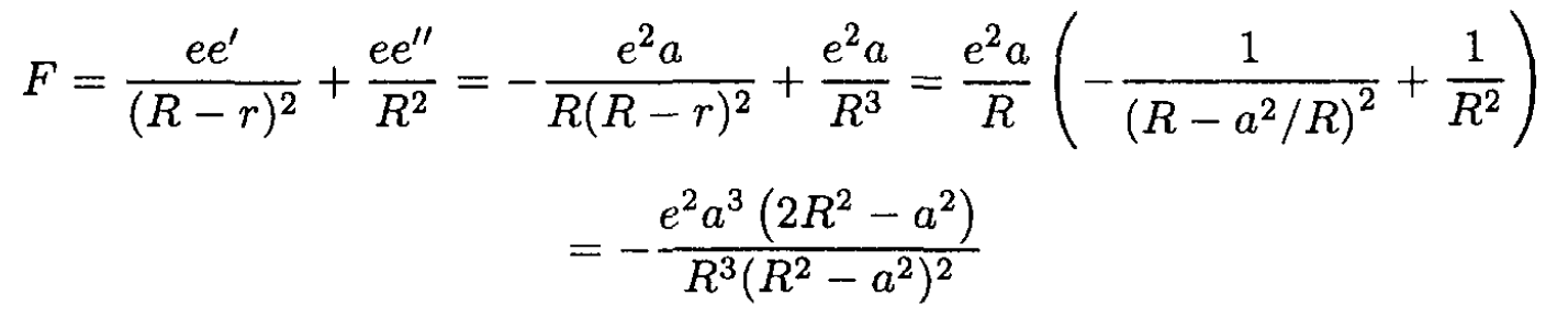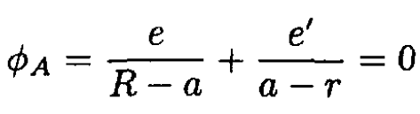 one image charge e' since we can always find a spherical surface of zero potential for two charges. In general, we must consider the potential at arbitrary points on the surface. Consider, for simplicity, two points A and B on opposite sides of a diameter (see Figure 1.2a). The potentials at points A and B due to the two charges e and e' are, respectively,