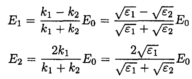 where the indices 1 and 2 correspond to dielectric media 1 and 2 (see Figure