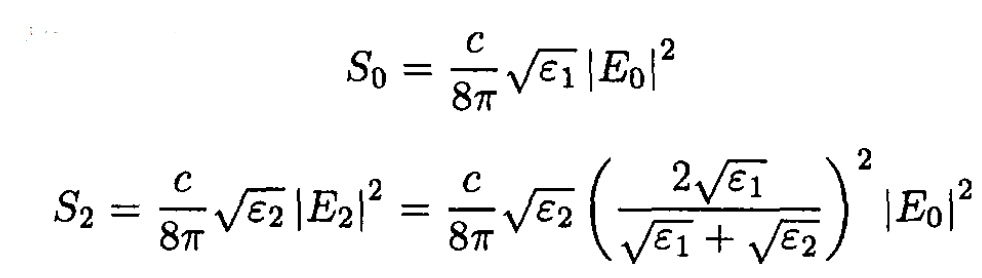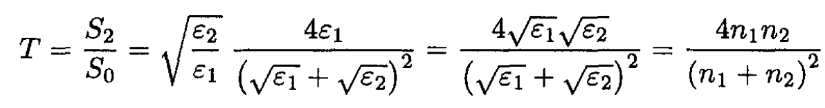 where S1 is the magnitude of the Poynting vector for the reflected wave. We can check that T + R = 1 by adding (9) and (10).
