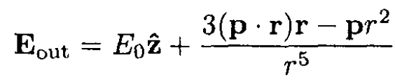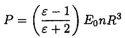 Using the condition nR2 << 1 (low concentration of particles), we can disregard the interaction between them. The polarization of the medium then is given by the dipole moment per unit volume. Here, we have n dipoles per unit volume, so