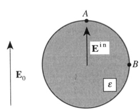 Inside the sphere, try a field oriented in the direction of the original field E0: