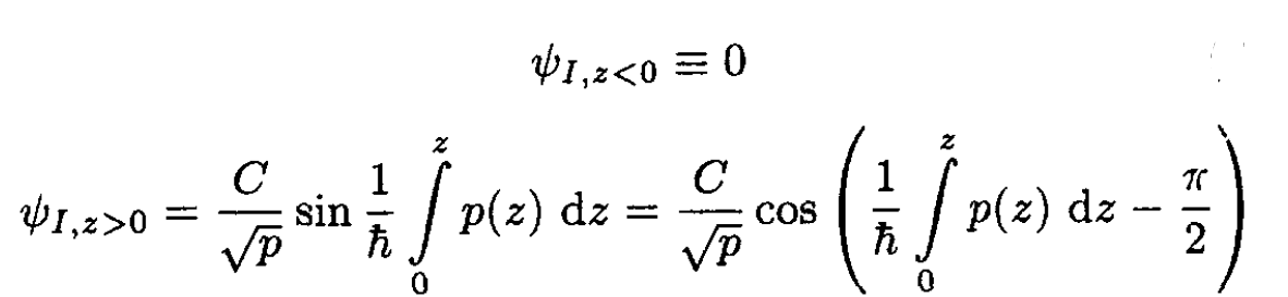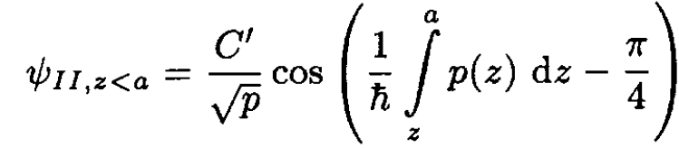 The potential energy here is U = mgz. We can apply the quasi-classical (WKB) approximation between points [0, a], where a = E/mg, with the quasi-classical function applicable all the way to z = 0. The wave function is given by