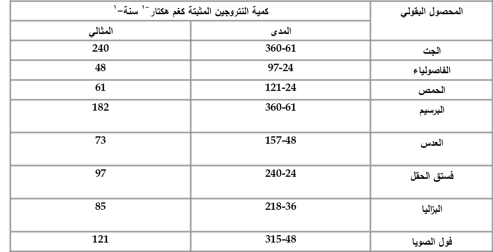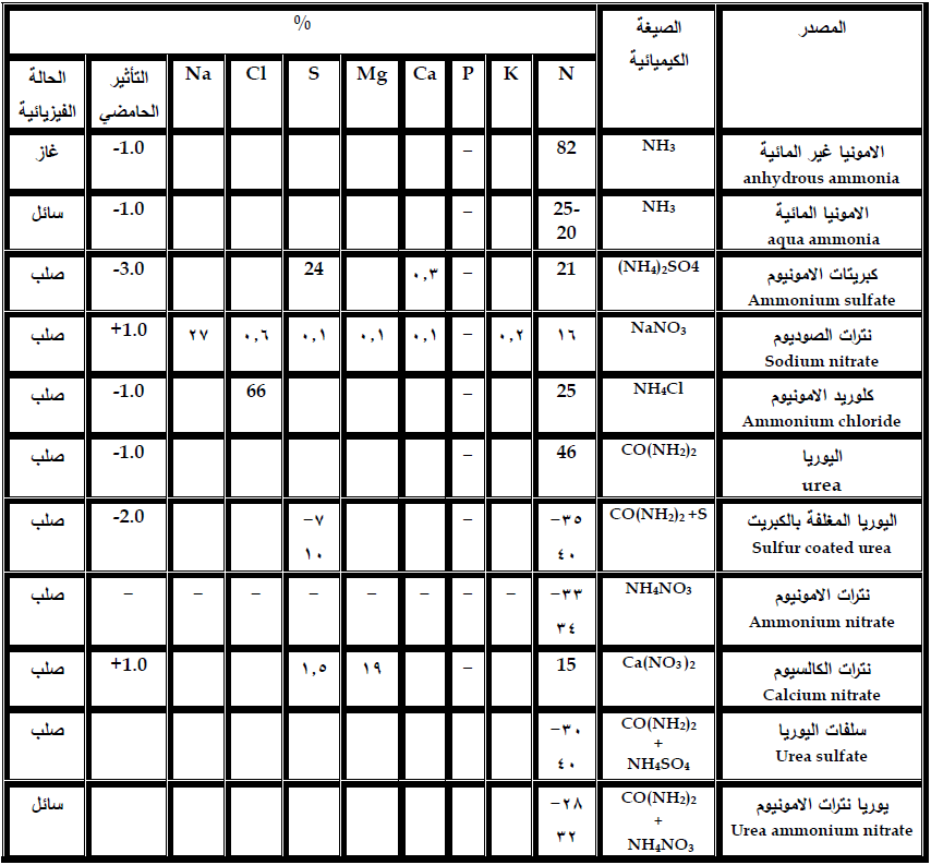 جدول 2 يبين بعض الاسمدة النتروجينية شائعة الاستعمال