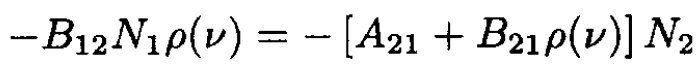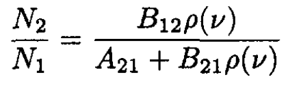 The populations N1 and N2 are in thermal equilibrium, and the radiation density is