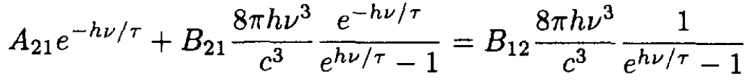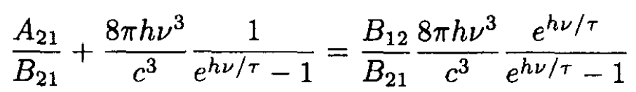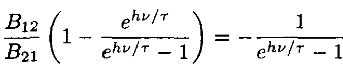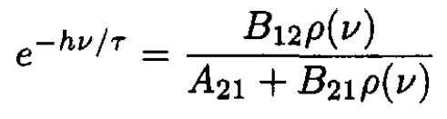 b) At thermal equilibrium the population of the upper state should be smaller than that of the lower state by the Boltzmann factor e-hv/τ, so (7) gives
