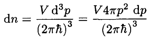 Replacing the sum over different modes by an integral in spherical coordinates, we may write, for the number of quantum states in a volume V,