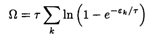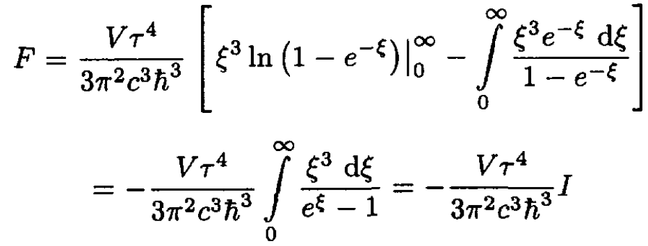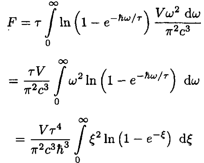 The free energy F would coincide with Ω (since F = Nμ + Ω = Ω). Again replacing the sum by an integral in (4) and substituting ξ = hω/τ yield