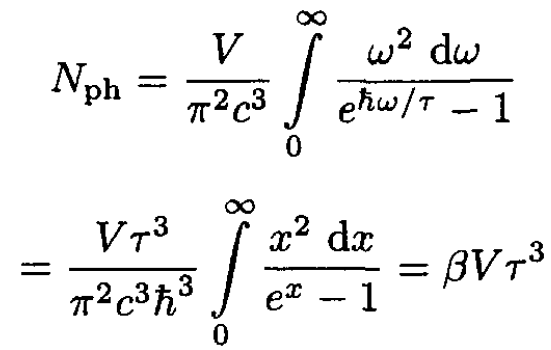Note that this result is the same as for an ultrarelativistic electron gas (which has the same dispersion law E = pc). The total number of photons is given by