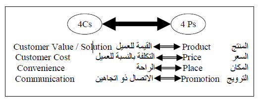 لذا ينبغي على المسوق التفكير أولاً من منظور( Cs4) الخاصة بالعميل، ثم يأتي تصميم المسوق للمزيج التسويقي(4 Ps)بناء على ذلك .