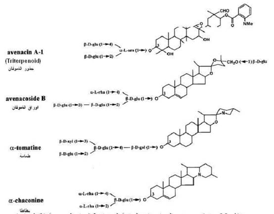 شكل 1 : تركيب بعض الصابونيات النباتية المضادة للأحياء المجهرية (الفطريات)