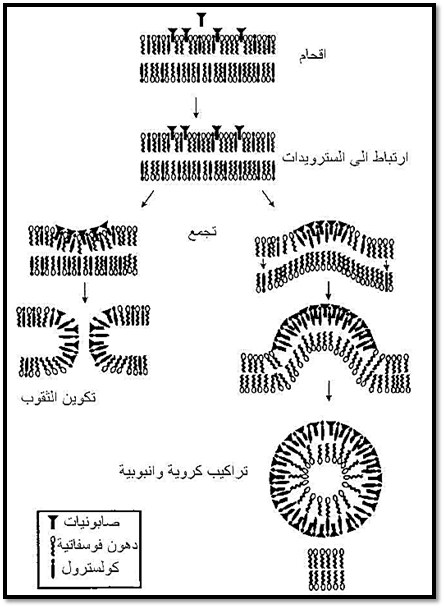 شكل 2 : آلية تأثير الصابونيات على الأغشية الخلوية