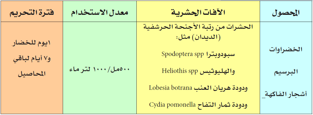 > يستخدم المبيد في المكافحة المتكاملة IPM.
