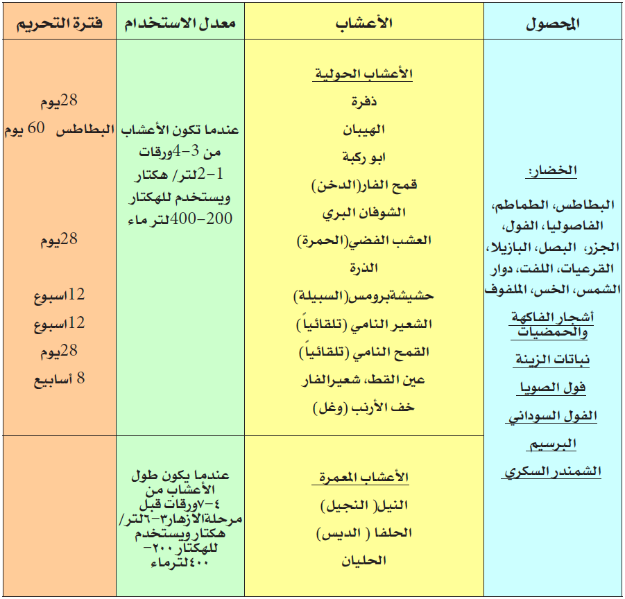 لا يسمح برعي الماشية في المناطق المعاملة أو تقديم النبات المعامل قبل مرور 28 يوم على الرش.