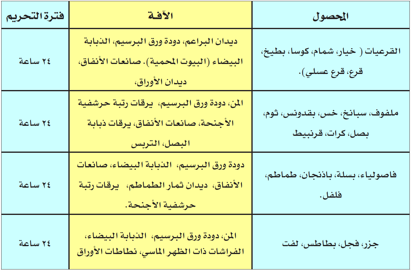5. رش مباشرة على الآفة مع تبليل الورقة جيداً في الصباح الباكر أو قبل الغروب.
