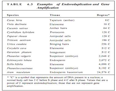 Gene amplification is similar to endoreduplication but involves only some genes that are repeatedly replicated. The amplified genes are those needed for the specialized metabolism of the mature cell. For example, as a protein-rich seed develops, its cells need large quantities of the messenger RNA that codes (or the storage protein, and those genes are amplified. But it would be a waste of energy and resources and deleterious to the plant to replicate all the other genes as well. The most extreme case of gene amplification known is in Arum maculatum (a relative of Philodendron): Each nucleus has enough DNA lor 24,576 copies of every gene. We do not know how many genes are being amplified and how many are present as only two copies per nucleus, so we cannot compute the actual number of copies of each amplified gene, but it is certainly more than 24,576.