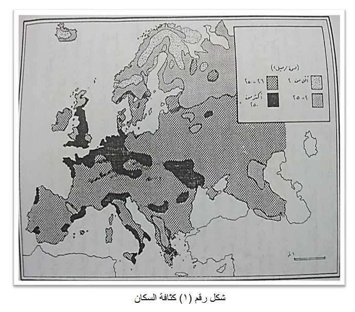 تفيد دراسة كثافة السكان في مجال الجغرافيا الإقليمية في تحديد مدى الاكتظاظ السكاني وتتبع أسباب التباين في توزيع السكان بالأقاليم المختلفة، وللحصول على إجابة للتساؤلات التي تدور حول مدى قدرة الأقاليم كثيفة السكان على استيعاب اعداد جديدة من البشر، وهل الأقاليم الأقل كثافة ستظل على حالها فترة طويلة وهو وضع يتطلب التعمق في بحث الامكانات البيئية والملامح البشرية للأقاليم قيد الدراسة. ولدراسة كثافة السكان في اوربا بشيء من التفصيل يحسن تقسيم القارة تبعا للكثافة السكانية الى الأقاليم الرئيسية التالية: (شكل رقم 1)