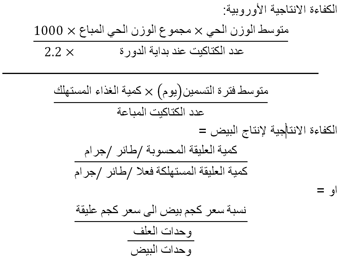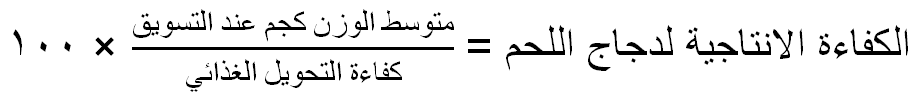 6- كفاءة التحويل الغذائي لكتاكيت اللحم من 1,8 – 2,2 حسب نوع السلالة.