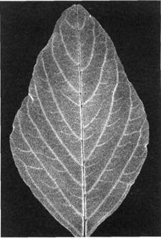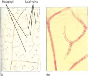 FIGURE 11:A leaf of Amaranthus retroflexus treated to remove all tissues except vascular bundles. The extensive reticulate venation is obvious in this dicot leaf; no part of the leaf is without veins. (Courtesy of D. Fisher, University of Hawaii)
