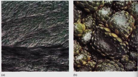 FIGUREb3: (a) The leaves of lamb's ears (Stachys) are so densely covered with hairs that they often appear white. The hairs greatly reduce the amount of heat that these leaves absorb from sunlight. (b) These plants of Sempervivum are native to high alpine regions where ultraviolet radiation is intense. The hairs of the leaf epidermis reflect part of the ultraviolet radiation away from the plant.