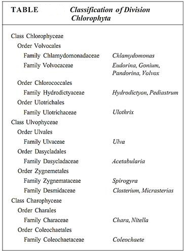 REPRESENTATIVE GENERA OF THE GREEN ALGAE