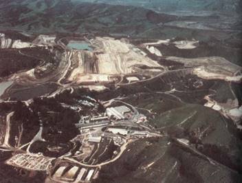 FIGURE 1:The true immensity of the deposits of microscopic diatom fossil frustules is difficult to imagine. This is a mine of diatomaceous earth or diatomite. The frustules are excellent as polishing material or as filtering agents in water purification plants and swimming pools. (Courtesy of the Celete Corporation, Lompoc, California)