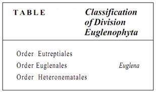 This division comprises a rather large group of organisms: More than 800 species have been discovered, named, and placed into 36 genera (Table). Its members, euglenoids, illustrate the problem of trying to classify protistans as plants or animals: 25 genera never have chloroplasts at all, but 11 do. Most are unicellular (Fig. 1), but in some species a few cells remain together after cell division.